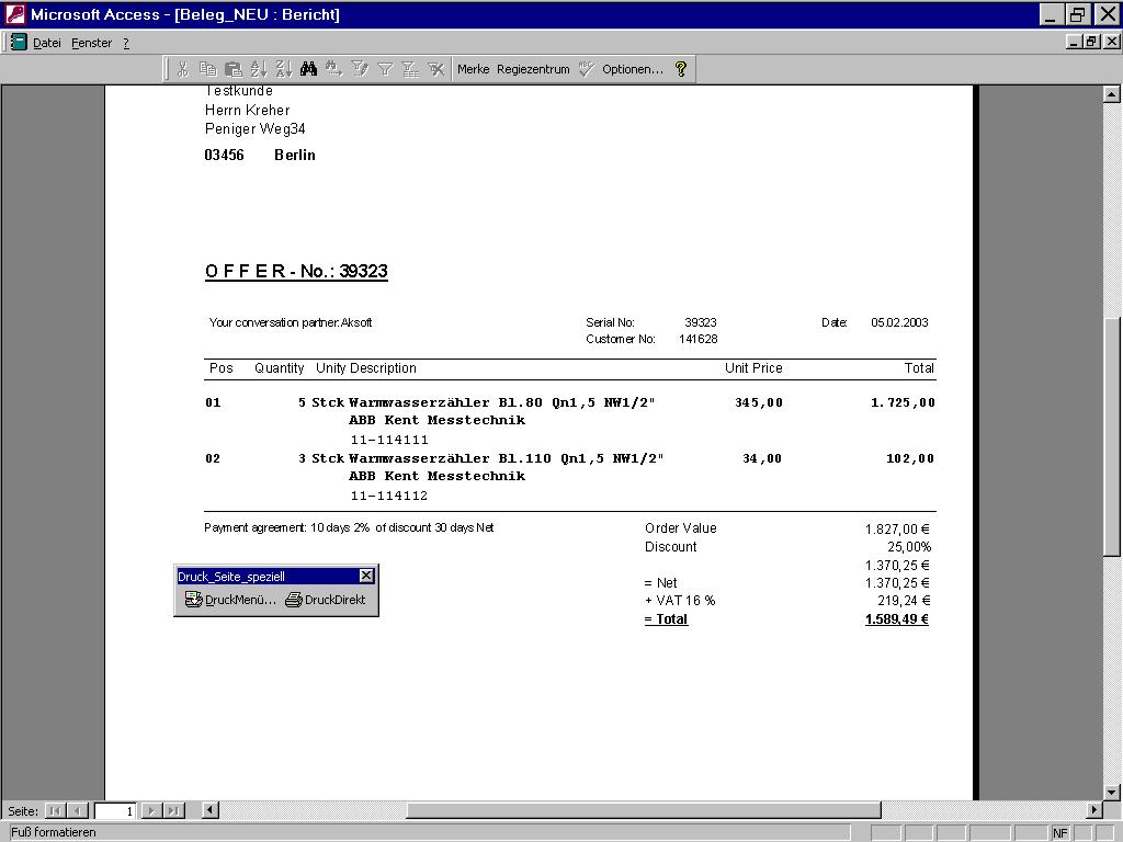 Das Vorhandensein einer 2. Adresse und diese selbst wird beim Druck
