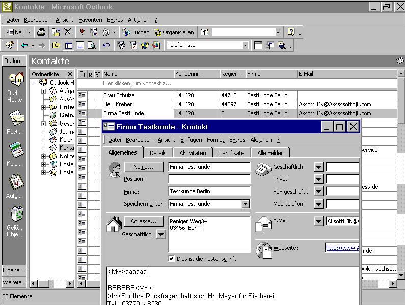 Zusammenspiel Datenbank (Kunden) und Outlook-Kontakt