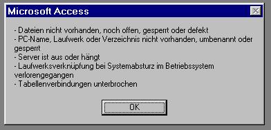 verbergen (Beschädigte Datenbank, Netzwerk gestört usw.).
