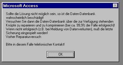 Daten-Datenbank hin. Sie muß repariert werden (s. unten Diagnose 3).