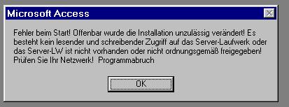 Netzwerkumgebung zu finden. Das Programm kann die Serverdatenbank nicht
